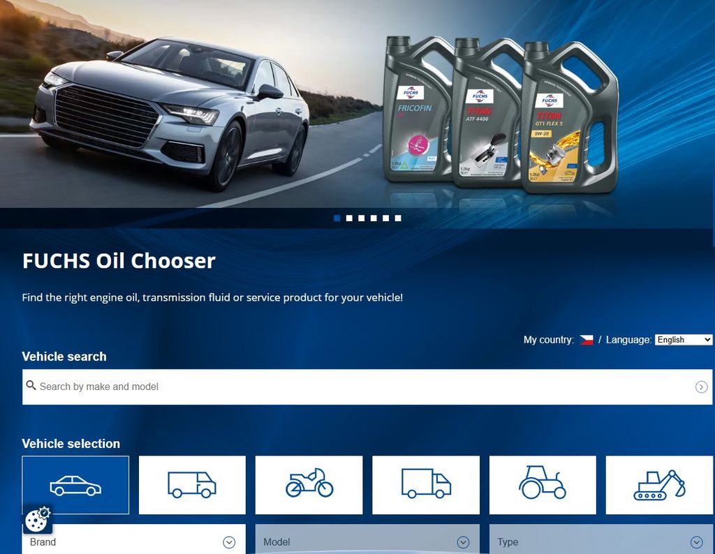Darüber hinaus ist es uns gelungen, eine Lösung zu entwickeln, die alle empfohlenen Produkte für das gewählte Fahrzeug in einer Ansicht anzeigt. Dies ist ein großer Fortschritt für die bessere Sichtbarkeit unserer Produkte und verbessert die Benutzerfreundlichkeit des Ölwegweiser erheblich. Zusätzlich können Sie nun alle Komponenten ein- und ausblenden, einzelne Komponenten auswählen (auch für die Druckansicht) und innerhalb jeder Komponente einen bestimmten Anwendungsfall festlegen (siehe hier: https://www.fuchs.com/cz/de/oelwegweiser/).