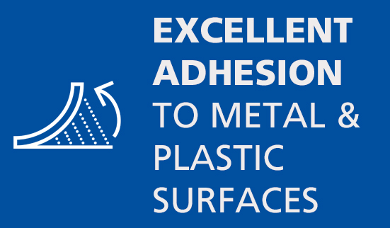 - Exceptional adhesion to metal and plastic surfaces