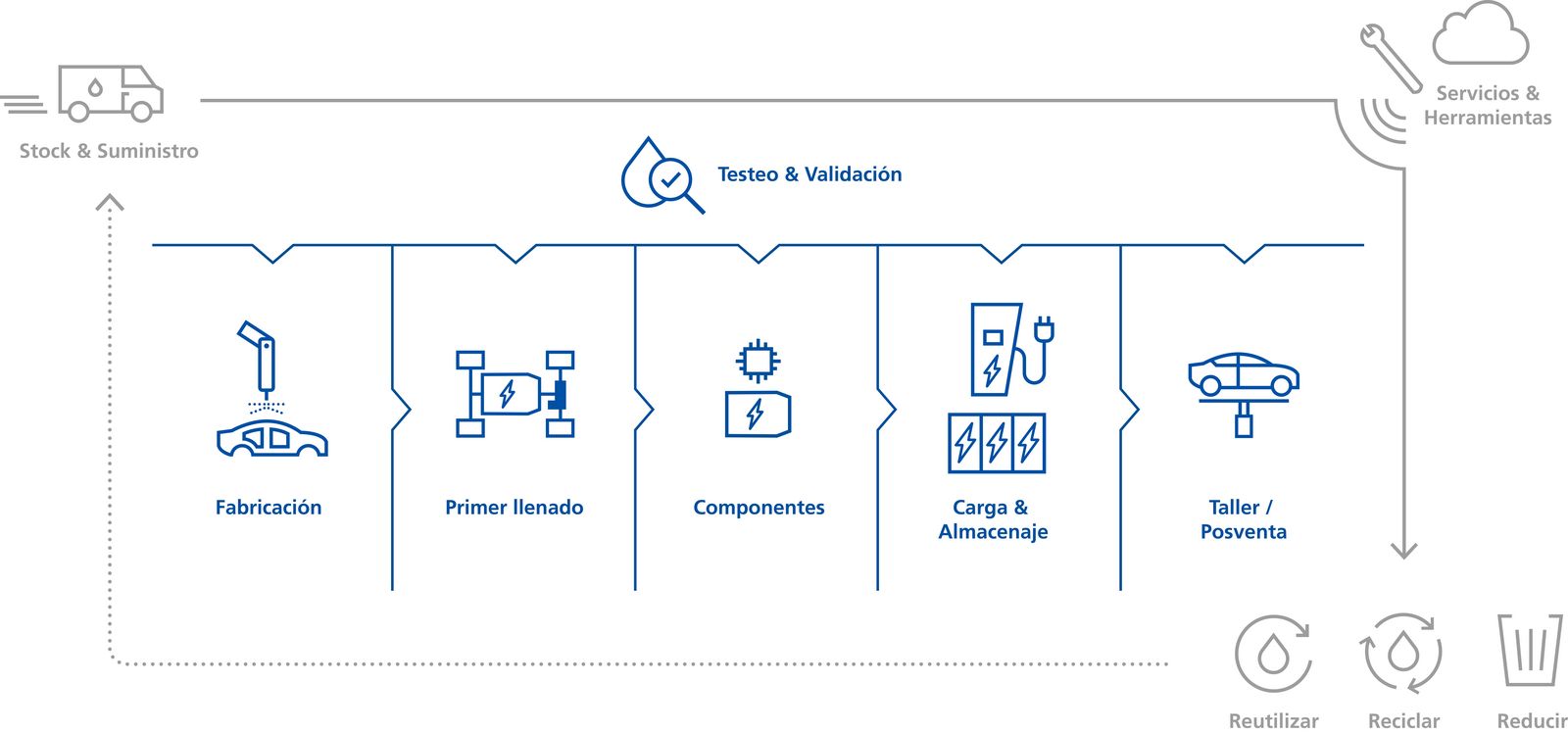 Como compañía líder en lubricantes para la industria automovilística, sabemos lo que es importante en cada fase. Por ello, brindamos apoyo con nuestra amplia gama de productos y conocimientos especializados, y ayudamos a seguir desarrollando esta tecnología.
