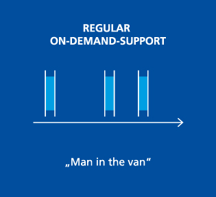 No matter the circumstances you operate in or the challenges you face – we’ll find a suitable way to deliver our services, tools and lubricants. In order to facilitate this level of customization, the options to implement your solution range from one time visits – for instance to set up a piece of technology – to more long-term support. For example, the continuous remote analysis of your lubricants condition or the on-site management of stocks and waste.