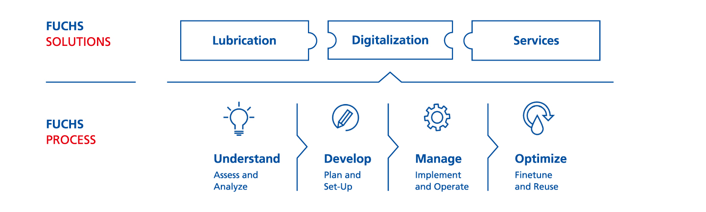 FUCHS Smart Services bring far more to the table than “just” a product. Instead, we combine performance fluids, digital technologies and a wide range of services into customized solutions. Solutions that do not only fit your individual processes perfectly but strive for improvement – along every step of the way and beyond.