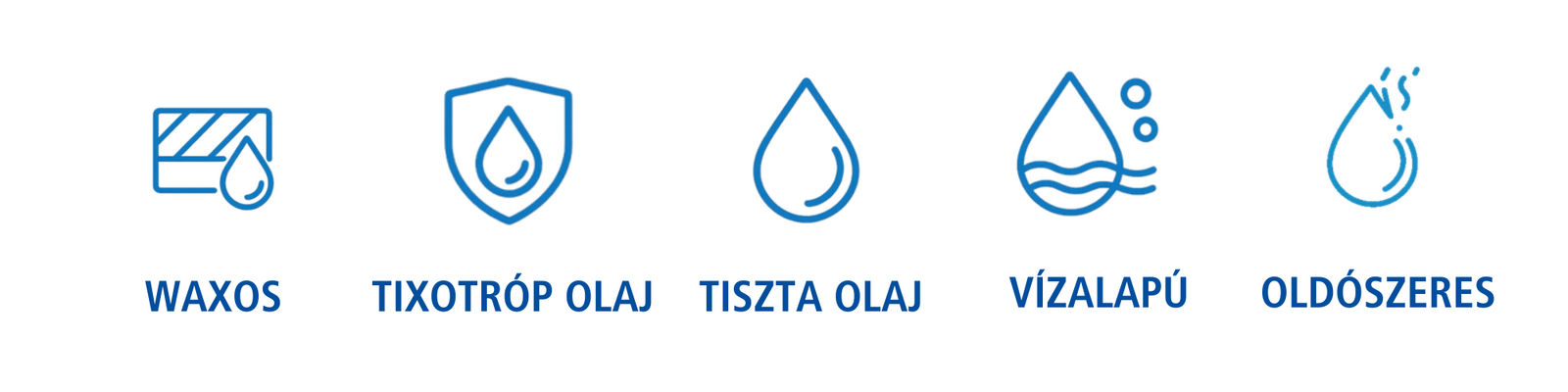 Viaszok, tixotróp olajok, oldószer alapú és vízben diszpergálható koncentrátumok