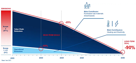 Hos oss på FUCHS sträcker sig hållbarhet långt bortom vår egen verksamhet och vårt eget beteende. Vi utvärderar och analyserar kontinuerligt utsläppen - inte bara från vår egen verksamhet utan också från hela vår värdekedja uppströms och nedströms. Därför sträcker sig vår strategi för nettonollutsläpp längre än till våra operativa utsläpp från våra egna produktionsanläggningar.